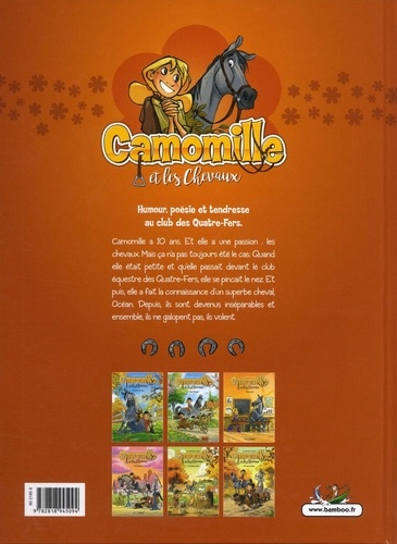 Humour, poésie et tendresse au club des Quatre-Fers. Camomille a 10 ans. Et elle a une passion : les chevaux. Mais ça n'a pas toujours été le cas. Quand elle était petite et qu'elle passait devant le club équestre des Quatre-Fers, elle se pinçait le nez. Et puis, elle a fait la connaissance d'un superbe cheval, Océan. Depuis, ils sont devenus inséparables et ensemble, ils ne galopent pas, ils volent.