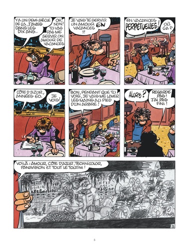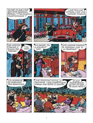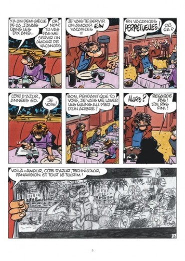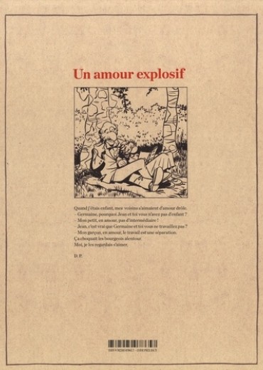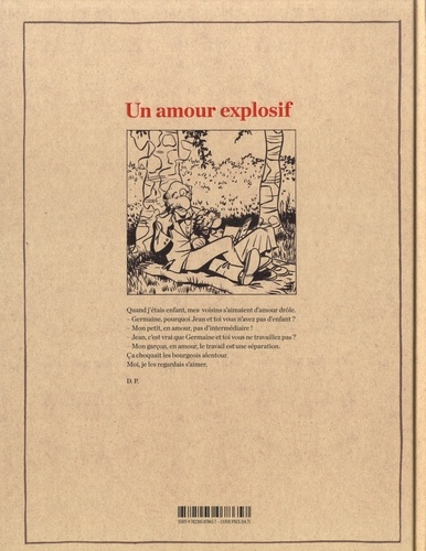 Quand j'étais enfant, mes voisins s'aimaient d'amour drôle. Germaine, pourquoi Jean et toi vous n'avez pas d'enfant ? Mon petit, en amour, pas d'intermédiaire ! Jean, c'est vrai que Germaine et toi vous ne travaillez pas ? - Mon garçon, en amour, le travail est une séparation. Ca choquait les bourgeois alentour. Moi, je les regardais s'aimer. D. P. Daniel Pennac et Florence Cestac s'associent pour un tendre one shot : une vraie petite musique du bonheur ! Quand il était gosse, Daniel Pennac passait ses vacances à La Colle-sur-Loup, sur la Côte d'Azur. Soleil, figuiers et grande treille sous laquelle on joue à la pétanque. C'est là qu'avec son frère Bernard il fait la rencontre de Jean et Germaine : lui, grand chauve façon héron ; elle, maigre, rose et rieuse. Toujours de bonne humeur, ils intriguent avec leur joie de vivre. Pas d'enfants, pas de boulot, Jean et Germaine vivent un amour sans intermédiaire, un amour sédentaire, un amour exemplaire !