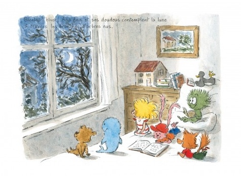 Petite soeur du célèbre Pico Bogue, Ana Ana est une petite fille astucieuse, vive et rigolote. Elle vit de grandes aventures avec ses doudous chéris : Touffe de poils, Grizzou, Pingpong, Zigzag, Goupille, Baleineau. Tel un chef d'orchestre, elle mène à la baguette cette petite troupe joyeuse qui la suit dans ses idées ou ses bêtises les plus fantaisistes. Ils découvriront cette fois-ci leur jardin enneigé, et donc la neige : son froissement sous les pas, le froid, la beauté de la nature et bien sûr... les jeux d'hiver !