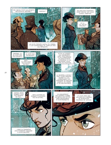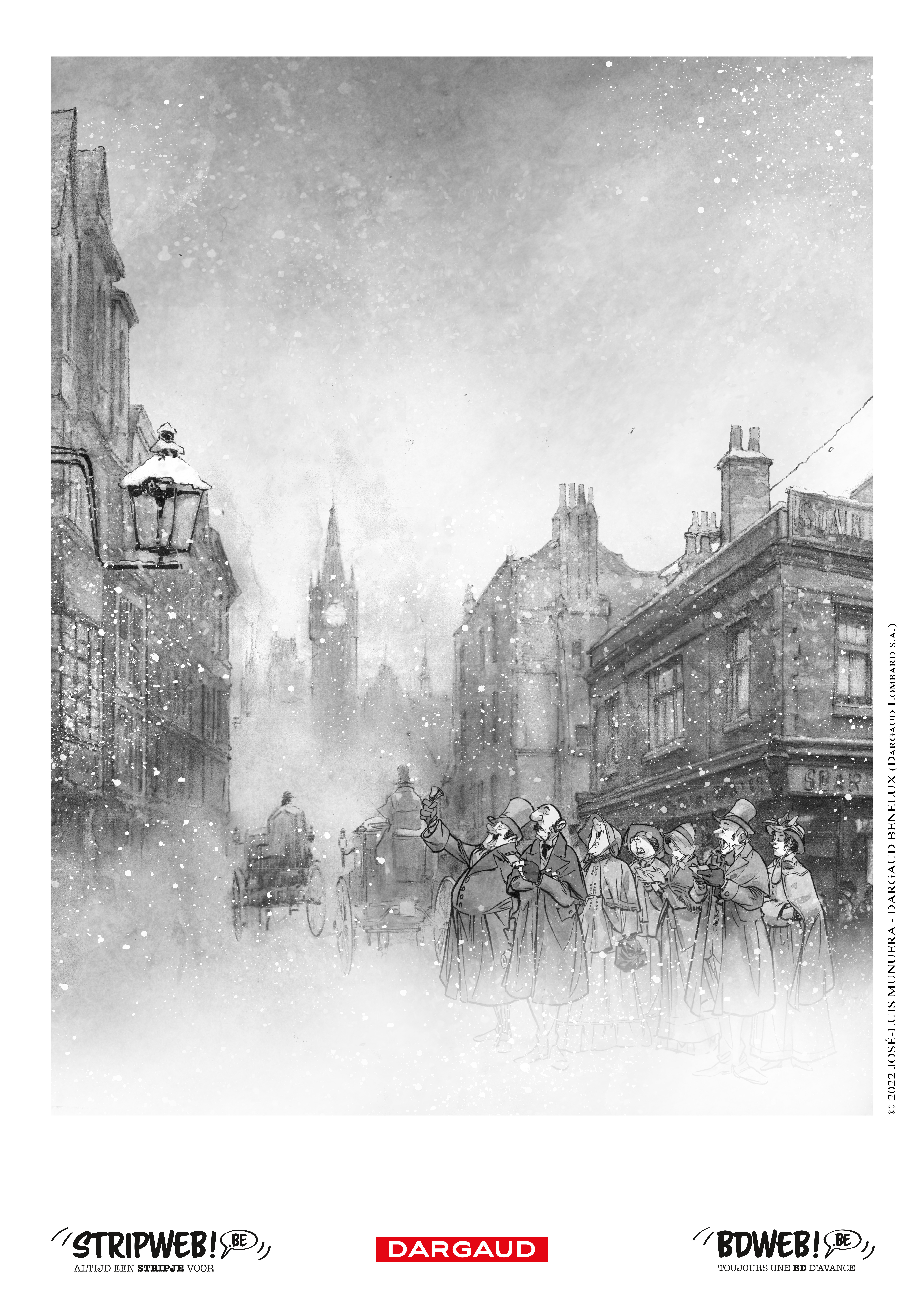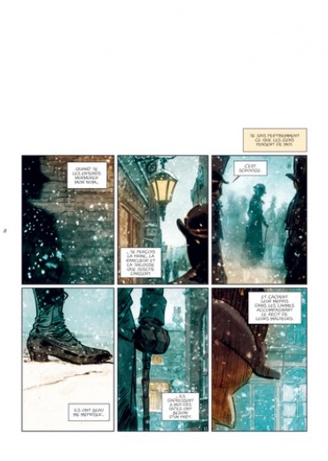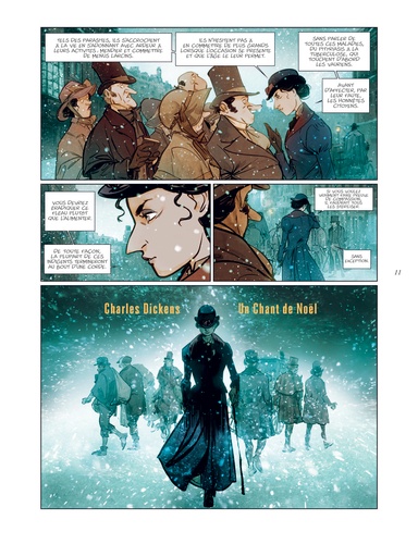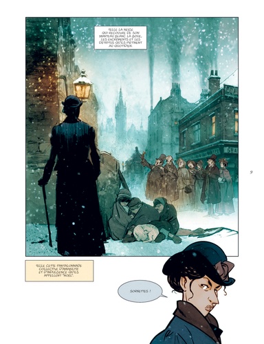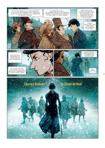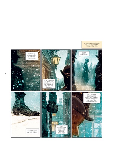 Londres, 1843. Tous les habitants, les mieux lotis comme les plus démunis, s'apprêtent à fêter Noël. Tous, à l'exception de Scrooge. Aux yeux de cette riche commerçante, insensible au malheur des autres comme à l'atmosphère de liesse qui baigne la cité, seuls le travail et l'argent ont de l'importance. On la dit radine, égoïste et mesquine. Elle préfère considérer qu'elle a l'esprit pratique. Et tandis que les festivités illuminent la ville et le coeur de ses habitants, Scrooge rumine sa misanthropie... Une nuit, des esprits viennent lui rendre visite. Ils l'emmènent avec eux, à la rencontre de la jeune fille qu'elle était, quelques années plus tôt, lorsque la cupidité n'avait pas encore rongé son coeur. Mais aussi à la découverte de celle qu'elle aurait pu devenir si elle avait choisi la voie de la bonté... Après le Bartleby d'Herman Melville, José Luis Munuera adapte librement un autre classique de la littérature anglo-saxonne : Un chant de Noël, de Charles Dickens. Munuera s'empare ainsi d'un des chefs-d'oeuvre de l'écrivain anglais, paru en 1843, et féminise le personnage de Scrooge. Une relecture délicieuse, à savourer pour les fêtes !