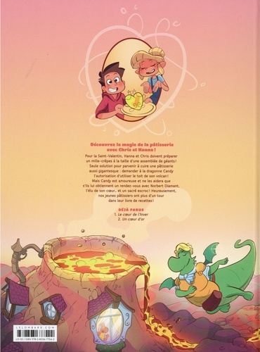 Pour la Saint-Valentin, Hanna et Chris doivent préparer un mille-crêpes à la taille d'une assemblée de géants ! Seule solution pour parvenir à cuire une pâtisserie aussi gigantesque : demander à la dragonne Candy l'autorisation d'utiliser le toit de son volcan ! Mais Candy est amoureuse et ne les aidera que s'ils lui obtiennent un rendez-vous avec Norbert Diamant, l'élu de son coeur et un sacré escroc ! Heureusement, nos jeunes pâtissiers ont plus d'un tour dans leur livre de recettes !