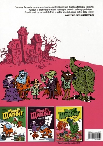 La vie n'est pas toujours simple au " Maudit Manoir "... Avec des locataires comme Dracunaze le vampire, Bernard le loup-garou, l'horreur des marais, le professeur Von Skalpel et sa créature Hans, chaque jour apporte son lot de querelles inextricables et de situations loufoques. Impossible pour Béatrice, la propriétaire de se faire payer le loyer... Quant à savoir qui va remplir le frigo, et surtout avec quoi... Mieux vaut ne pas y penser. Bienvenue chez les monstres !