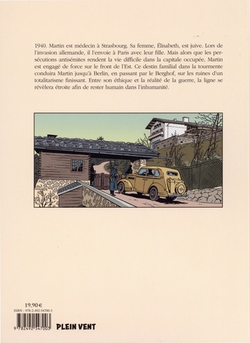 1940. Martin est médecin à Strasbourg. Sa femme, Elisabeth, est juive. Lors de l'invasion allemande, il l'envoie à Paris avec leur fille. Mais alors que les persécutions antisémites rendent la vie difficile dans la capitale occupée, Martin est engagé de force sur le front de l'Est. Ce destin familial dans la tourmente conduira Martin jusqu'à Berlin, en passant par le Berghof, sur les ruines d'un totalitarisme finissant. Entre son éthique et la réalité de la guerre, la ligne se révèlera étroite afin de rester humain dans l'inhumanité.