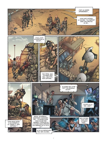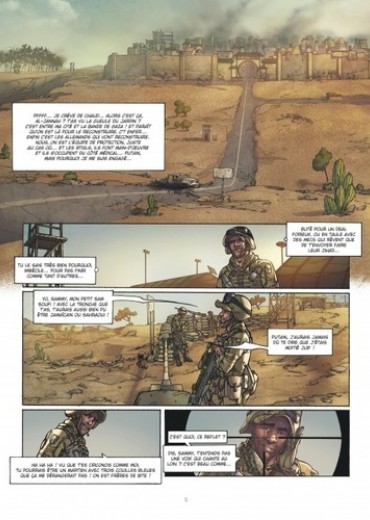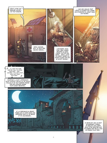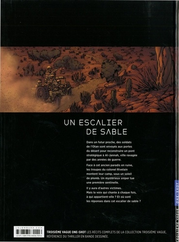 Dans un futur proche, des soldats de l'Otan sont envoyés aux portes du désert pour reconstruire un pont stratégique à Al-Jannah, ville ravagée par des années de guerre. Face à cet ancien paradis en ruine, les troupes du colonel Rivelain montent leur camp, sous un soleil de plomb. Un mystérieux sniper tue une première sentinelle. Il y aura d'autres victimes. Mais la voix qui chante à chaque fois, à qui appartient-elle ? Et où sont les réponses dans cet escalier de sable ?