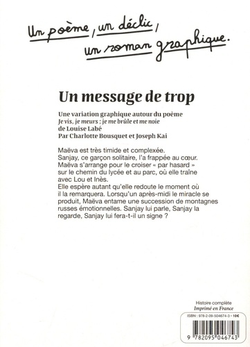 Maëva est très timide et complexée. Sanjay, ce garçon solitaire, l'a frappée au coeur. Maëva s'arrange pour le croiser " par hasard " sur le chemin du lycée et au parc, où elle traîne avec Lou et Inès. Elle espère autant qu'elle redoute le moment où il la remarquera. Lorsqu'un après-midi le miracle se produit, Maëva entame une succession de montagnes russes émotionnelles. Sanjay lui parle, Sanjay la regarde, Sanjay lui fera-t-il un signe ?