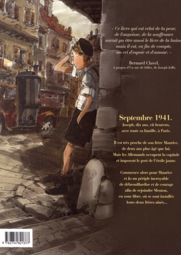 Septembre 1941. Joseph, dix ans, vit heureux, avec toute sa famille, à Paris. Il est très proche de son frère Maurice, de deux ans plus âgé que lui. Mais les allemands occupent la capitale et imposent le port de l'étoile jaune. Commence alors pour Maurice et Jo un périple incroyable de débrouillardise et de courage afin de rejoindre Menton, en zone libre, où se sont installés leurs deux frères aînés…