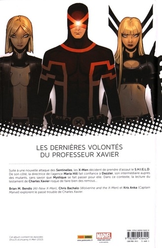 Suite à une nouvelle attaque des Sentinelles, les X-Men décident de prendre d'assaut le S.H.I.E.L.D. De son côté, la directrice de l'agence Maria Hill fait confiance à Dazzler, son intermédiaire auprès des mutants, sans savoir que Mystique se fait passer pour elle. Dans ce contexte, la lecture du testament de Charles Xavier risque de faire bien des remous... Brian M. Bendis (All-New X-Men), Chris Bachalo (Wolverine and the X-Men) et Kris Anka (Captain Marvel) explorent le passé trouble de Charles Xavier.
