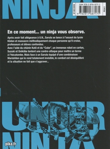 En ce moment... un ninja vous observe. Après avoir fait allégeance à U.N., Saruta se lance à l'assaut du lycée Kôdan et massacre méthodiquement chaque personne qu'il croise, professeurs et élèves confondus. Avec l'aide du chûnin Katô et du "Cube", un immense robot en carton, Suzuki et Onikôbe tentent une contre-attaque pour mettre un terme à l'hécatombe. Mais face à un Saruta équipé d'une combinaison Marishiten qui le rend totalement invisible, le combat est déséquilibré et la situation ne fait que s'aggraver...