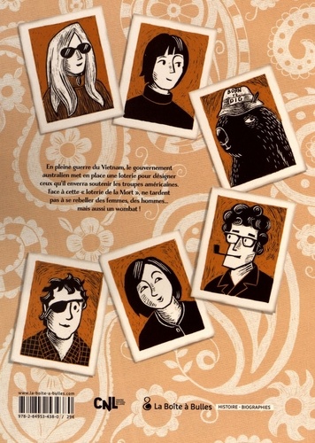 Quelle est cette idée, pour le moins saugrenue et pourtant historique, d'enrôler un wombat dans la Guerre du Vietnam ? L'histoire se passe en 1965. En Australie, les jeunes ne se pressent pas dans les bureaux de recrutement de l'armée. Pour pallier ce manque de volontaires, le gouvernement met en place une loterie un peu particulière : elle a pour objectif de désigner les prochains jeunes hommes à envoyer au front en soutien aux troupes américaines... A Melbourne, Jean McLean, une femme au foyer (et future politicienne australienne), s'insurge contre cet appel aux armes pour le moins... inique. Il en va de même pour ses amis artistes Clif et Marlene Pugh, qui vivent dans le bush australien avec leur wombat Hooper. Déterminée à renverser ce qu'elle appelle une "loterie de la Mort", Jean crée le mouvement "Save Our Sons" destiné, comme son nom l'indique, à protéger les fils de la nation de la machine de guerre gouvernementale. Avec d'autres militants, elle descend dans la rue pour protester. De leur côté, Clif et Marlene inscrivent Hooper, leur wombat, sur les listes du recensement afin de montrer toute l'absurdité de ce système de recrutement. Pendant ce temps, dans la petite ville de campagne de Katunga, Bill Cantwell s'engage dans l'armée australienne et, à Saïgon, la jeune Mai Ho écrit des lettres aux soldats sud-vietnamiens depuis sa table d'école. Lorsqu'arrivent les papiers d'appel de Hooper, le jeune wombat déserte et entre dans la clandestinité... Au fil de ces intrigues qui se croisent, les destins s'entremêlent et un nouveau monde émerge ; un monde où la compréhension et l'empathie ont davantage de sens que la guerre. En mêlant fiction et réalité documentée, absurde et tragique, Mirranda Burton livre un roman graphique étonnant, un hymne à la paix et à l'empathie.