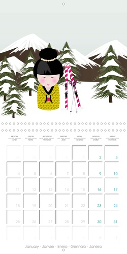 Illustration vectorielle et mensuelle de l'année par des Kokeshis. Colorées et ludiques, ces illustrations sauront égayer chaque mois de l'année. Un rayon de soleil. Les calendriers Calvendo sont des produits haut de gamme - avec ces plus qui font la différence : nos calendriers présentent bien toute l'année grâce à leur papier de qualité supérieure et leur reliure à spirales pour une manipulation des pages plus aisée et une tenue parfaitement droite contre le mur. Un film plastique transparent protège la couverture de ces calendriers toujours plus solides, qui se déclinent désormais en cinq langues. Offrez-vous un calendrier Calvendo qui reste beau tout au long de l'année. Ce calendrier à succès a été réédité cette année avec les mêmes images et une grille calendaire mise à jour. Ce calendrier réussi a été réédité cette année avec les mêmes images et le calendrier mis à jour.