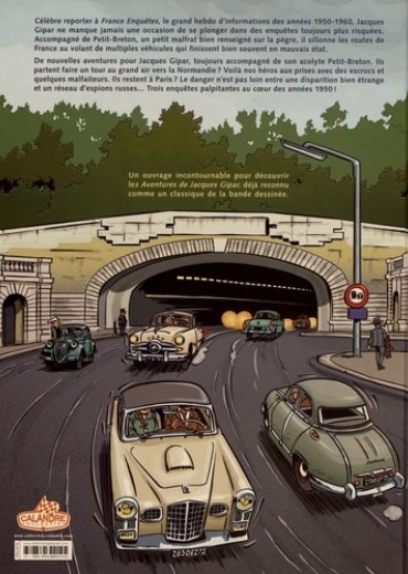 Célèbre reporter à France Enquêtes, le grand hebdo d'informations des années 1950-1960, Jacques Gipar ne manque jamais une occasion de se plonger dans des enquêtes toujours plus risquées. Accompagné de Petit-Breton, un petit malfrat bien renseigné sur la pègre, il sillonne les routes de France au volant de multiples véhicules qui finissent bien souvent en mauvais état. De nouvelles aventures pour Jacques Gipar, toujours accompagné de son acolyte Petit-Breton. Ils partent faire un tour au grand air vers la Normandie ? Voilà nos héros aux prises avec des escrocs et quelques malfaiteurs. Ils restent à Paris ? Le danger n'est pas loin entre une disparition bien étrange et un réseau d'espions russes... Trois enquêtes palpitantes au coeur des années 1950 !