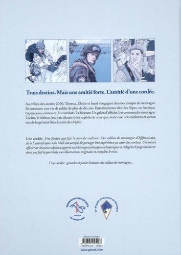 Trois destins. Mais une amitié forte. L'amitié d'une cordée. Au milieu des années 2000, Thomas, Elodie et Imad s'engagent dans les troupes de montagne. Ils entament une vie de soldat de plus de dix ans. Entraînements dans les Alpes, en Arctique. Opéracions extérieures.Les combats. La blessure. Un galon d'officier. Le commandos montagne. Lucien, le vétéran, leur fait découvrir les exploits de ceux qui, avant eux, ont combattu et vaincu sous le large béret bleu, la tarte des Alpins.