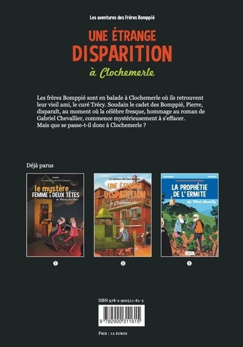 Les frères Bomppié sont en balade à Clochemerle où ils retrouvent leur vieil ami, le curé Trécy. Soudain le cadet des Bomppié, Pierre, disparaît, au moment où la célèbre fresque, hommage au roman de Gabriel Chevallier, commence mystérieusement à s'effacer. Mais que se passe-t-il donc à Clochemerle ?