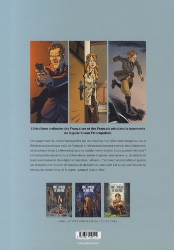 L'identité peut être une fierté... ou un crime. François Engel continue de dérouler pour Jeff l'histoire de sa famille. Antoine va-t-il guérir son âme blessée en vendangeant le vin dont il rêve ? L'engagement de Joséphine la portera sur les chemins mortellement dangereux de la résistance, tandis que celui de François le fera inexorablement avancer dans l'abjection et la collaboration. Le frère et la soeur se condamnent-ils ainsi à une guerre fratricide ? L'impitoyable descente aux enfers de la famille Engel est une mise à nu du destin de la plus européenne des régions françaises, l'Alsace. L'histoire d'un vignoble en guerre est d'abord une histoire d'hommes et de femmes, mais elle est aussi une histoire de temps, du temps long de la vigne... jusqu'à aujourd'hui. Pourquoi François, au seuil de la mort, se livre-t-il ainsi à Jeff, ce jeune inconnu ? Pour se décharger d'un fardeau aussi ancien que terrible ou pour suivre un plan médité à l'avance ? Le rusé vieillard va offrir à Jeff une nouvelle vie... et un nouveau départ au domaine viticole Engel. Cette saga familiale au souffle romanesque s'achève avec ce dernier tome à la fois poignant et palpitant. L'histoire des Engel est celle, tragique, d'une famille comme les autres dans une région pas tout à fait comme les autres. Celle d'une famille en guerre. Contre l'Histoire et contre elle-même. Après L'Ile des Justes, Stéphane Piatzszek et Espé nous racontent une nouvelle fois l'héroïsme ordinaire des Françaises et des Français pris dans la tourmente de la guerre sous l'Occupation.