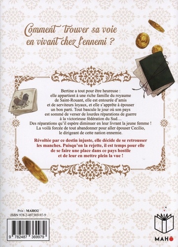 Bertine a tout pour être heureuse : elle appartient à une riche famille du royaume de Saint-Rouant, elle est entourée d'amis et de serviteurs loyaux, et elle s'apprête à épouser un bon parti. Tout bascule le jour où son pays est sommé de verser de lourdes réparations de guerre à la victorieuse fédération du Sud... Des réparations qu'il espère diminuer en leur livrant la jeune femme La voilà forcée de tout abandonner pour aller épouser Cecilio, le dirigeant de cette nation ennemie. Révoltée par ce destin injuste, elle décide de se retrousser les manches. Puisqu'on la rejette, il est temps pour elle de se faire une place dans ce pays hostile et de leur en mettre plein la vue !