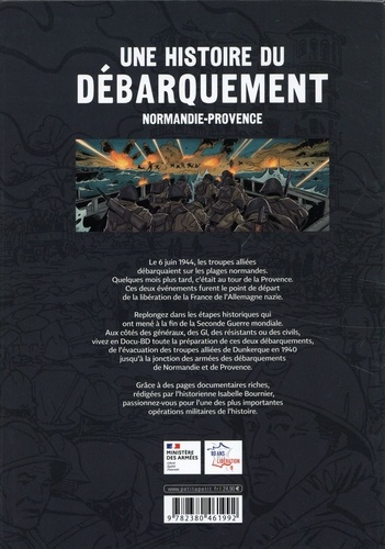 Le 6 juin 1944, les troupes alliées débarquaient sur les plages normandes. Quelques mois plus tard, c'était au tour de la Provence. Ces deux événements furent le point de départ de la libération de la France de l'Allemagne nazie. Replongez dans les étapes historiques qui ont mené à la fin de la Seconde Guerre mondiale. Aux côtés des généraux, des GI, des résistants ou des civils, vivez en Docu-BD toute la préparation de ces deux débarquements, de l'évacuation des troupes alliées de Dunkerque en 1940 jusqu'à la jonction des armées des débarquements de Normandie et de Provence. Grâce à des pages documentaires riches, rédigées par l'historienne Isabelle Bournier, passionnez-vous pour l'une des plus importantes opérations militaires de l'histoire.