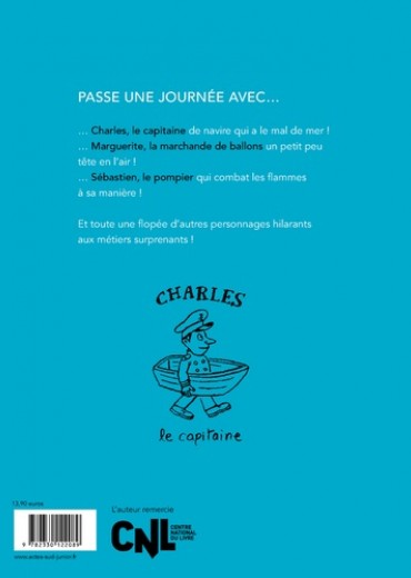 Passe une journée avec... Charles, le capitaine de navire qui a le mal de mer ! ... Marguerite, la marchande de ballon un petit peu tête en l'air ! ... Sébastien, le pompier qui combat les flammes à sa manière ! Et toute une flopée d'autres personnages hilarants aux métiers surprenants !