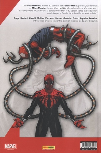 Les Web-Warriors, menés au combat par Spider-Man supérieur, Spider-Man , et Miles Morales, bravent les Héritiers lors d'un ultime affrontement ! Qui l'emportera ? Qui mourra ? Et qu'adviendra-t-il du Spider-Verse et des Spiders une fois que la fumée de la bataille sera retombée ? Gage, Barberi, Caselli, Molina, Vazquez, Houser, Genolet, Priest, Siqueira, Ferreira, entre autres artistes, signent le dernier chapitre de Spider-Geddon.