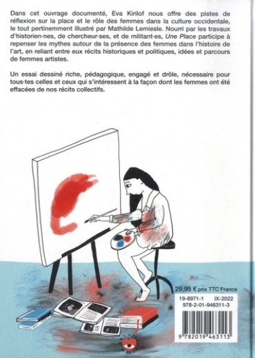 Les femmes ont toujours fait de l'art, en tous lieux et en tout temps. Certaines ont même été célèbres de leur vivant Vigee Le Brun, Mary Cassat, Berthe Morisot, Georgia O'Keefee, Louise Bourgeois, Dora Maar pour ne citer que quelques exemples. Pourtant leur présence dans les livres d'histoire et les collections permanentes des musées reste anecdotique. En France, le Louvre ne compte qu'une trentaine de peintures de femmes artistes dans ses collections et au musée d'Orsay, sur les 4 463 artistes de la collection permanente, on compte seulement 296 de femmes, un peu moins de 7%. Peintresses, n'est pas une énième galerie de portrait, mais un essai graphique complet qui les replace dans le contexte d'une société patriarcale qui privilégie et encourage la créativité des hommes. Avec beaucoup d'humour et de pédagogie, les mots d'Eva Kirilof se mêlent aux dessins de Mathilde Lemiesle pour créer une bande dessinée riche qui permet de rappeler que l'art est un lieu de négociation de pouvoir comme un autre. Quelques exemples de sujets abordés : -L'accès des femmes à une éducation artistique -La représentation des femmes dans l'art du point de vue masculin -Le sexisme dans le monde de l'art -Le mythe du génie masculin -Le rôle de la muse -Quelle place pour les femmes dans les musées ? -La maternité comme frein à une carrière artistique