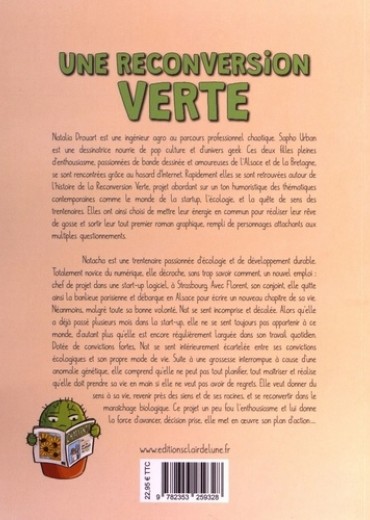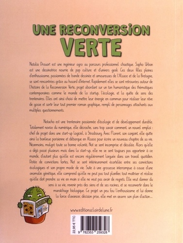 Natacha est une trentenaire passionnée d'écologie et de développement durable. Totalement novice du numérique, elle décroche, sans trop savoir comment, un nouvel emploi : chef de projet dans une start-up logiciel, à Strasbourg. Avec Florent, son conjoint, elle quitte ainsi la banlieue parisienne et débarque en Alsace pour écrire un nouveau chapitre de sa vie. Néanmoins, malgré toute sa bonne volonté, Nat se sent incomprise et décalée. Alors qu'elle a déjà passé plusieurs mois dans la start up, elle ne se sent toujours pas appartenir à ce monde, d'autant plus qu'elle est encore régulièrement larguée dans son travail quotidien. Se sentant illégitime dans ses missions, elle remet constamment sa carrière en question. Dotée de convictions fortes, elle se sent également isolée philosophiquement. Ses collègues sont passionnés de hautes technologies, de jeux vidéos et de réalité virtuelle, et elle se fait souvent charrier quand elle parle de sa sensibilité au développement durable et de sa volonté de revenir à un mode de vie sobre et inspiré de la nature. Nat se sent intérieurement écartelée entre ses convictions écologiques et son propre mode de vie. Suite à une grossesse interrompue à cause d'une anomalie génétique, elle comprend qu'elle ne peut pas tout planifier, tout maîtriser et réalise qu'elle doit prendre sa vie en main si elle ne veut pas avoir de regrets. Elle veut donner du sens à sa vie, revenir dans l'Ouest, proche des siens et de ses racines et se reconvertir dans le maraîchage biologique. Ce projet un peu fou l'enthousiasme et lui donne la force d'avancer, décision prise, elle met en oeuvre son plan d'action... Ce récit a pour ambition d'aborder des thèmes contemporains majeurs : alors que chaque élément de notre vie semble être parfaitement à sa place, comment prendre le recul nécessaire pour se poser les bonnes questions ? Comment trouver la force d'assumer ses convictions et sa volonté de changer de voie, dans un monde pétri de préjugés et de pressions sociales ? Comment remettre en cause l'ordre établi lorsqu'on n'arrive plus à vivre avec ses propres contradictions ? Sous la forme d'un roman graphique frais et plein d'humour, le lecteur est invité à suivre les différentes étapes qui mèneront finalement le personnage principal à quitter son emploi de cadre pour aller réaliser son rêve de reconversion verte.