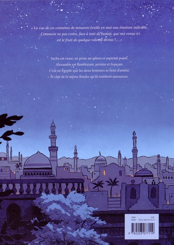 "La vue de ces centaines de minarets éveille en moi une émotion indicible. Comment ne pas croire, face à tant de beauté, que ma venue ici est le fruit de quelque volonté divine ? . . ". Sacha est russe, en proie au spleen et aspirant poète. Alexandre est flamboyant, peintre et français. C'est en Egypte que les deux hommes se lient d'amitié. Et c'est de la même femme qu'ils tombent amoureux.