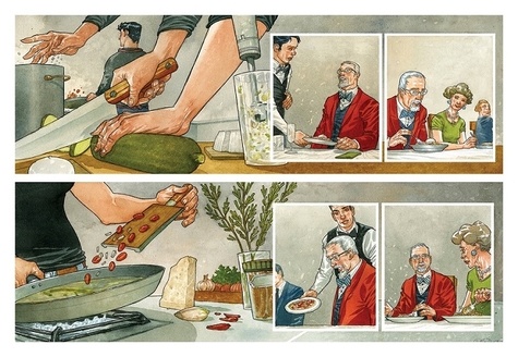 Les turbulents Rosa et Marino sont les enfants jumeaux de l'un des plus grands chefs étoilés au monde, Gustavo Sapori. Il a disparu depuis de nombreuses années, après avoir dérobé une importante somme d'argent à un parrain de la mafia napolitaine dont il était le cuisinier privé. Les jumeaux, placés sous le régime de protection des témoins, décident de récupérer le ricettario de leur père, oublié dans la villa du boss. Ce livre de cuisine doit leur permettre de saisir la chance de leur vie car ils briguent une place de chef au sein de "L'International", un restaurant gastronomique parisien de haut vol. Ce roman graphique est aussi un recueil de recettes, un guide de voyage culinaire en Italie.