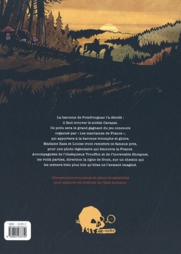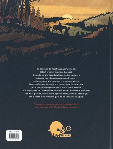 La baronne de Pomfrougnac l'a décidé : il faut trouver le soldat Carapat. Ce poilu sera le grand gagnant du Jeu concours organisé par. "Les marraines de France", qui apportera à la baronne triomphe et gloire. Madame Zaza et Louise iront remettre ce fameux prix, pour une photo légendaire qui émouvra la France. Accompagnées de l'obséquieux Troufion et de l'increvable Shrapnel, les voilà parties, direction la ligne de front, sur un chemin qui les mènera bien plus loin qu'elles ne l'avaient imaginé. Une aventure truculente et pleine de sensibilité pour explorer les tréfonds de l'âme humaine.