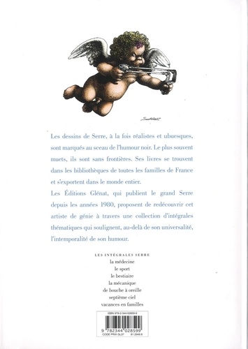 Les dessins de Serre, à la fois réalistes et ubuesques, sont marqués au sceau de l'humour noir. Le plus souvent muets, ils sont sans frontières. Ses livres se trouvent dans les bibliothèques de -toutes les familles de France et s'exportent dans le monde entier. Les Editions Glénat, qui publient le grand Serre depuis les années 1980, proposent de redécouvrir cet artiste de génie à travers une collection d'intégrales thématiques qui soulignent, au-delà de son universalité, l'intemporalité de son humour.