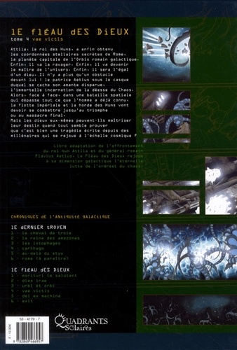 Attila, le roi des Huns, a enfin obtenu les coordonnées stellaires secrètes de Rome, la planète capitale de l'Orbis romain galactique. Enfin, il va la ravager. Enfin, il va devenir le maître de l'univers Enfin, il sera l'égal d'un dieu Il n'y a plus qu'un obstacle devant lui le patrice Aetius sous le casque duquel se cache son amante disparue, l'immortelle incarnation de la déesse du Chaos Alors, face à face, dans une bataille spatiale qui dépasse tout ce que l'homme a déjà connu, la flotte impériale et la horde des Huns vont devoir se combattre jusqu'au triomphe ou au massacre final Mais les dieux eux-mêmes peuvent-ils maîtriser leur destin quand tout semble prouver que c'est bien une tragédie écrite depuis des millénaires qui se rejoue à l'échelle cosmique ?