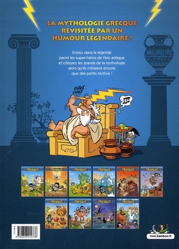La mythologie grecque revisitée par un humour légendaire ! Les Petits Mythos en entendent parler presque tous les jours, mais peu ont eu l'opportunité de s'y rendre. C'est officiel, nos héros vont visiter le fameux mont Olympe et découvrir l'histoire de leurs ancêtres à tous ! Chaos, Gaia, Ouranos, Cronos, les titans et les géants sont au programme de cet atelier découverte à la sauce Mythos.