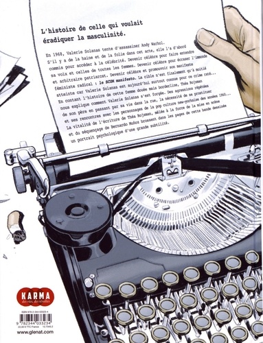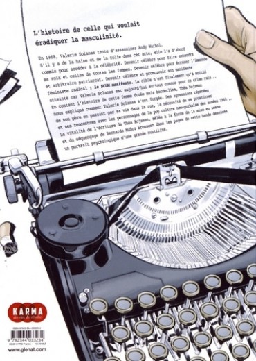 L'histoire de celle qui voulait éradiquer la masculinité. En 1968, Valérie Solanas tente d'assassiner Andy Warhol. S'il y a de la haine et de la folie dans cet acte, elle l'a d'abord commis pour accéder à la célébrité. Devenir célèbre pour faire entendre sa voix et celles de toutes les femmes. Devenir célèbre pour écraser l'immonde et arbitraire patriarcat. Devenir célèbre et promouvoir son manifeste féministe radical : le SCUM manifesto. La cible n'est finalement qu'à moitié atteinte car Valérie Solanas est aujourd'hui surtout connue pour ce crime raté... En contant l'histoire de cette femme douée mais borderline, Théa Rojzman nous explique comment Valérie Solanas s'est forgée. Des agressions répétées de son père, en passant par sa vie dans la rue, la nécessité de se prostituer et ses rencontres avec les personnages de la pop culture new-yorkaise des années 1960... La vitalité de l'écriture de Théa, mêlée à la force de la mise en scène et du séquençage de Juan Bernardo Munoz Serrano brossent dans les pages de cette bande dessinée un portrait psychologique d'une grande subtilité.