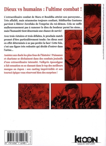 Dieux vs humains : l'ultime combat ! Sollicité par Zeus pour défendre les intérêts des divinités, Bouddha surprend toute l'arène en promettant de protéger l'humanité ! Les sept dieux du bonheur descendent alors du ciel pour s'unir et ainsi reprendre leur forme originelle : celle de Zerofuku. Malgré son apparence démoniaque, ce nouvel adversaire avait jadis pour mission d'aider les humains en absorbant leurs malheurs... Hélas, plus il le faisait, plus la situation empirait ! Jusqu'à ce qu'un homme à l'aura quasi-divine apparaisse, provoquant la colère du dieu... Assistez aux duels les plus fous de l'histoire ! Puissance et charisme se déchaînent dans des combats jouissifs d'une extraordinaire intensité. Valkyrie Apocalypse a fait sensation en se classant dans le top des meilleurs mangas au Japon : son casting imprévisible et son tournoi épique vous réservent bien des surprises !