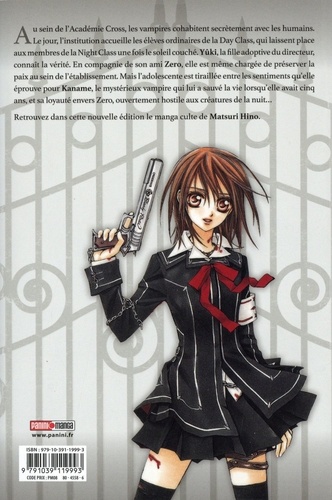 L'Académie Cross est une école bien particulière dans laquelle cohabitent la Day class et la Night class, la première accueille des étudiants humains, la deuxième éduque des vampires ! La jeune Yuki et le taciturne Zero, les deux enfants adoptifs du directeur de l'établissement, sont chargés de s'assurer que cette cohabitation reste pacifiste. La jeune fille souhaite un futur dans lequel Hommes et vampires pourront coexister sans se combattre. Une conviction dictée aussi par les sentiments qu'elle éprouve pour le noble Kaname, le chef charismatique des vampires du collège. Un garçon qui, un jour, lui a sauvé la vie... Matsuri Hino est une mangaka publiée essentiellement dans des magazines shojo. A la fin de ses études, elle décide de devenir mangaka et y travaille d'arrache-pied... Neuf mois plus tard, elle publie sa première nouvelle : Kono yume ga sametara, dans le magazine LaLa Dx. Depuis, le succès lui sourit. Ses mangas se classent toujours dans le top 10 des meilleures ventes de shojo au Japon et ont été traduits dans de nombreux pays. C'est sa série Vampire Knight qui illustre le mieux ce succès. Devenue un classique pour de nombreux lecteurs, dans de nombreux pays, elle rejoint notre gamme Perfect Edition. L'occasion de découvrir, ou redécouvrir, en grand format ce classique des années 2000.