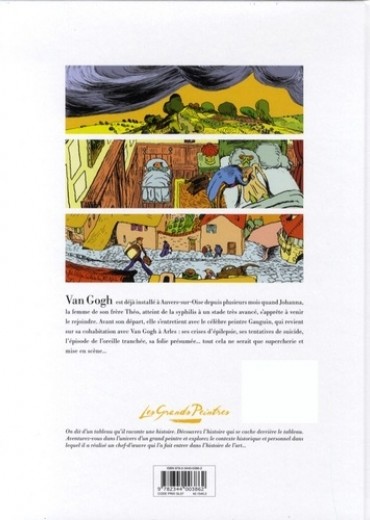 1890. Voilà plusieurs mois que Vincent Van Gogh s'est installé à Auvers-sur-Oise. Johanna, la femme de son frère Théo atteint de la syphilis à un stade très avancé, s'apprête à venir le rejoindre. Avant son départ, elle s'entretient avec le célèbre peintre Gauguin qui revient sur sa cohabitation avec Van Gogh à Arles : ses crises d'épilepsie, ses tentatives de suicide, l'épisode de l'oreille tranchée, sa folie présumée... tout cela ne serait que supercherie, mise en scène !Pour cet album des « Grands Peintres » consacré au génial Van Gogh, l'inimitable Michel Durand s'est intéressé aux derniers instants de la vie du maître, à Auvers-sur-Oise. Par son talent et son graphisme uniques, il nous transporte comme jamais dans l'expressionnisme de la fin de l'œuvre de Van Gogh, nous montrant que la folie n'est pas forcément là où on l'imagine...
