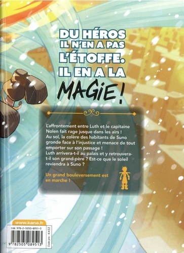 L'affrontement entre Luth et le capitaine Nolen fait rage jusque dans les airs ! Au sol, la colère des habitants de Suno gronde face à l'injustice et menace de tout emporter sur son passage ! Luth arrivera-t-il au palais et y retrouvera-t-il son grand-père ? Est-ce que le soleil reviendra à Suno ? Un grand bouleversement est en marche !