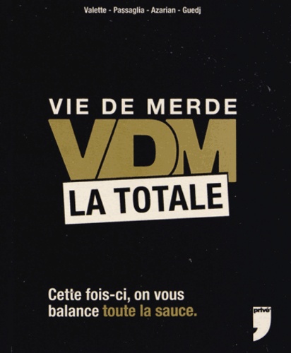Une VDM (Vie de Merde) est un témoignage posté sur un site Internet où des millions d'utilisateurs viennent raconter leurs petits malheurs ou leurs grandes poisses : viedemerde. Vous allez voir comme ça met de bonne humeur de lire que les autres en bavent bien plus que vous. C'est cruel, mais tellement bon. Et surtout, c'est drôle ! Janvier 2008 : la première VDM est postée. Un échange entre copains qui partagent leur galère de la journée et qui devient un site Internet. La France entière s'y met, et bientôt toute la planète. Depuis, VDM, ce sont 10 millions de témoignages recueillis, 50000 anecdotes publiées, 3 milliards de visites provenant de 236 pays, et autant de fous rires. Pour son 5e anniversaire, VDM vous fait La Totale : des centaines d'anecdotes devenues cultes, des commentaires hilarants, et les dessins des illustrateurs les plus tendance. Ici, on vous promet le meilleur. Vous allez pouvoir en rire, vous moquer, mais n'oubliez pas que ça peut à tout instant vous arriver...