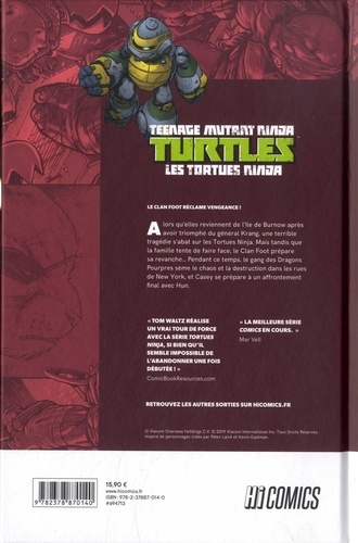 Le Clan Foot réclame vengeance ! Alors qu'elles reviennent de l'île de Burnow après avoir triomphé du général Krang, une terrible tragédie s'abat sur les Tortues. Mais tandis que la famille tente de faire face, le Clan Foot prépare sa revanche... Pendant ce temps, le gang des Dragons Pourpres sème le chaos et la destruction dans les rues de New York, et Casey se prépare à un affrontement final avec Hun.