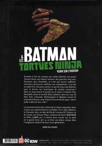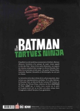 Formées à l'art du ninjutsu par maître Splinter, les quatre Tortues Ninja sont depuis toujours des guerriers hors pair. Pourtant, pour Donatello, ce n'est pas encore suffisant. Convaincu de pouvoir améliorer ses compétences, il se met en quête d'un nouveau mentor, et qui de mieux que Batman pour le former aux techniques de combat nocturnes ? Mais en empruntant le portail qui le mène à Gotham City, Donatello laisse le terrible Bane pénétrer dans les rues de New York. Leonardo, Michelangelo et Raphael seront-ils assez de trois pour venir à bout d'une armée de super-vilains prête à détruire leur ville ?