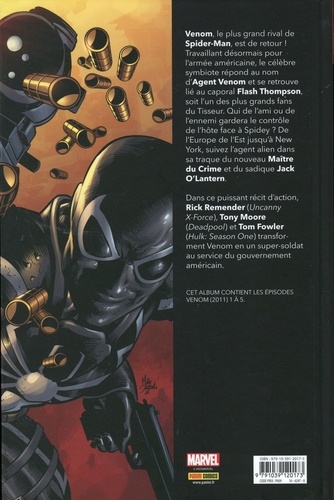Flash Thompson, un personnage bien connu de l'univers de Spider-Man, est le nouveau porteur du symbiote Venom ! Il travaille à l'occasion pour le gouvernement américain pour des missions secrètes. Seul problème : chaque fois qu'il fusionne avec Venom, le risque de ne plus pouvoir contrôler le symbiote augmente ! Eddie Brock n'est pas le seul humain à avoir partagé sa vie avec le symbiote extraterrestre qui fut le costume noir de Spider-Man. Vous trouverez ici les débuts de son association avec le paraplégique Flash Thompson, dans des épisodes signés Rick Remender (Uncanny Avengers) et Tony Moore (Deadpool) !