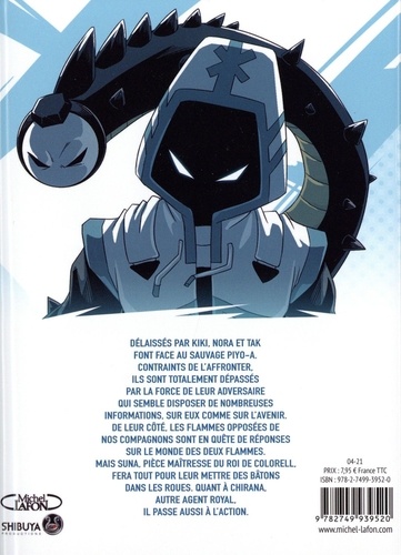 Délaissés par Kiki, Nora et Tak font face au sauvage Piyo-A. Contraints de l'affronter, ils sont totalement dépassés par la force de leur adversaire qui semble disposer de nombreuses informations, sur eux comme sur l'avenir. De leur côté, les flammes opposées de nos compagnons sont en quête de réponses sur le monde des deux flammes. Mais Suna, pièce maîtresse du roi de Colorell, fera tout pour leur mettre des bâtons dans les roues. Quant à Chirana, autre agent royal, il passe aussi à l'action.
