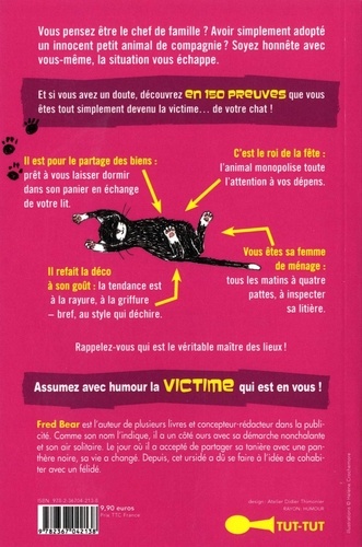 Vous pensez être le chef de famille ? Avoir simplement adopté un innocent petit animal de compagnie ? Soyez honnête avec vous-même, la situation vous échappe. Et si vous avez un doute, découvrez en 150 preuves que vous êtes tout simplement devenu la victime... de votre chat ! Rappelez-vous qui est le véritable maître des lieux ! Assumez avec humour la vernie qui est en vous !