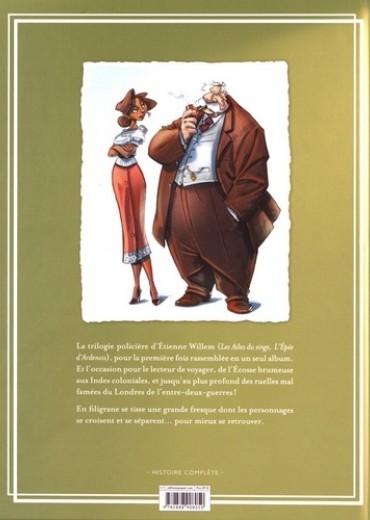 La trilogie policière d'Etienne Willem (Les Ailes du singe, L'Epée d'Ardenois), pour la première fois rassemblée en un seul album. Et l'occasion pour le lecteur de voyager, de l'Ecosse brumeuse aux Indes coloniales, et jusqu'au plus profond des ruelles mal famées du Londres de l'entre-deux-guerres ! En filigrane se tisse une grande fresque dont les personnages se croisent et se séparent... pour mieux se retrouver.