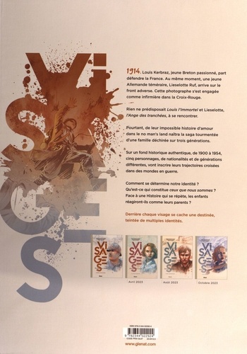 L'Histoire est le visage de l'aventure humaine. 1914. Louis Kerbraz, jeune Breton passionné, part défendre la France. Au même moment, une jeune allemande téméraire, Lieselotte Ruf, arrive sur le front adverse. Cette photographe s'est engagée comme infirmière dans la Croix-Rouge. Rien ne prédisposait Louis l'immortel et Lieselotte, l'Ange des tranchées, à se rencontrer. Pourtant, faisant fi du conflit qui oppose leurs nations, ces deux âmes artistiques vont s'aimer et, de cet amour naîtra un garçon. Dans le chaos qu'engendre la fin de la guerre, les deux amants se perdent. L' "enfant de la honte" qu'ils ont conçu sera retiré des bras de sa mère, et le jeune orphelin, blessé par la haine qu'on lui voue dans son propre pays, va en concevoir un extrême ressentiment envers ses deux géniteurs... Ainsi naîtra la saga tourmentée d'une famille déchirée sur trois générations. Sur un fond historique authentique, de 1900 à 1954, suivez la destinée de cinq personnages, de nationalités et de générations différentes, qui vont inscrire leurs destins croisés dans des mondes en guerre. Mais qu'est-ce qui détermine au final notre identité ? Qu'est-ce qui constitue ceux que nous sommes ? Face à une Histoire qui se répète, les enfants réagiront ils comme leurs parents ? L'union des différences n'est-elle pas préférable aux conflits et aux rancoeurs, préfigurant ainsi, en miroir, la formation de l'Europe des Nations ? Une grande saga d'aventures romanesques en 4 tomes, à paraître tous en 2023.