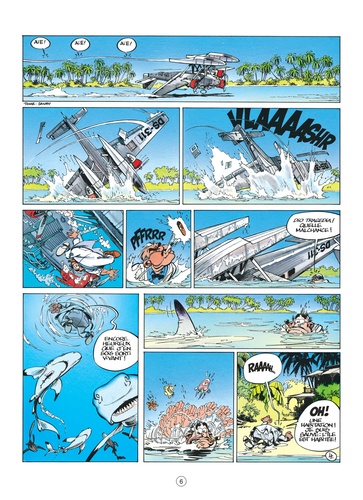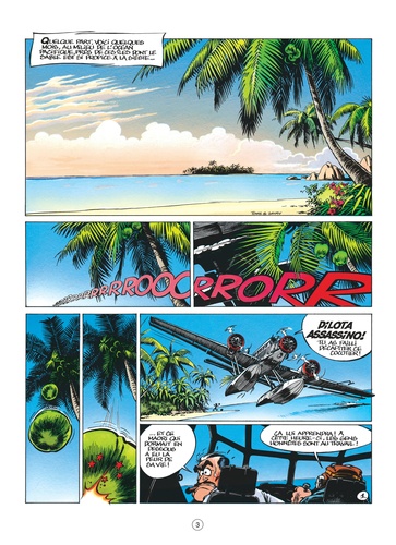 Spirou et Fantasio viennent en aide à Don Cortizone échoué sur un atoll.