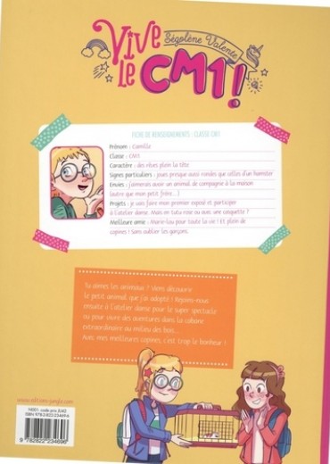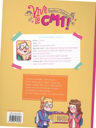 Une nouvelle série pour vivre de grandes amitiés et des aventures en s'amusant... et en grandissant ! Pendant son année de CM1, Camille vit de grandes aventures avec Marie-Lou, Antoine et ses meilleures copines. Elle rêve, comme Marie-Lou, d'avoir un animal domestique. Sous prétexte d'un exposé, toutes deux réussissent à convaincre leurs parents d'adopter un hamster... mais un seul, qu'elles se partagent à tour de rôle et dont les farces en classe les amusent. Plus tard, les deux amies s'inscrivent à l'atelier danse qui a lieu dans le préau de l'école ; seulement il n'est pas facile de s'initier au hip hop quand on voulait faire du modern jazz et que l'on est surnommée " le crapaud " pour ses improbables sautillements ! Enfin, au dernier trimestre, le grenier rassemble Camille et ses copines autour du carnet de secrets, qui renferme petites fâcheries, surprises inattendues et grands bonheurs...