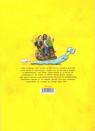 Voici le recueil tant attendu du meilleur des grinçantes aventures d'une bande de décroissants, publiées tous les mois dans le journal "La Décroissance". Une donne claque donnée à la société de consommation qui aliène et détruit nature, beauté, liberté... Mais aussi à ceux qui la critiquent, souvent pris dans des contradictions férocement moquées ici. De superbes dessins tout aussi mordants complètent cet ouvrage qui devrait faire date !
