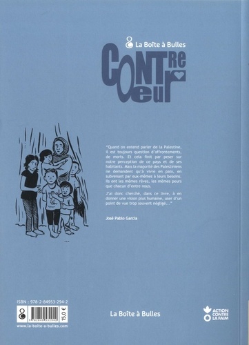 Bien décidé à arrêter son métier d'auteur de bande dessinée, José Pablo Garcia va recevoir une offre qui pourrait bien le faire changer d'avis... L'association Action Contre la Faim et l'Agence Espagnole de Coopération, lui proposent de partir 10 jours dans les Territoires Occupés puis de réaliser une bande dessinée de sensibilisation aux conditions de vie de la population locale. Le voici donc parti en Cisjordanie où la population vit depuis plus de 50 ans sous l'occupation puis à Gaza où le blocus imposé depuis plus de 10 ans rend les conditions de vie encore plus précaires. José Pablo Garcia porte un regard sans a priori et plein d'humanité sur un conflit qui semble chaque jour plus insoluble.