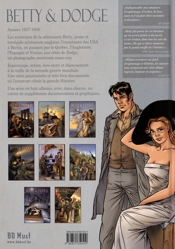 Années 1937-1938. Les aventures de la séduisante Betty, jeune et intrépide aristocrate anglaise, l'emmènent des USA à Berlin, en passant par le Québec, l'Angleterre, l'Espagne et Venise, aux côtés de Dodge, un photographe américain casse-cou. Espionnage, action, love-story et dépaysement à la veille de la seconde guerre mondiale. Une série passionnante et très bien documentée où l'aventure côtoie la grande Histoire. Une série en huit albums, avec, dans chacun, un cahier de suppléments documentaires et graphiques.