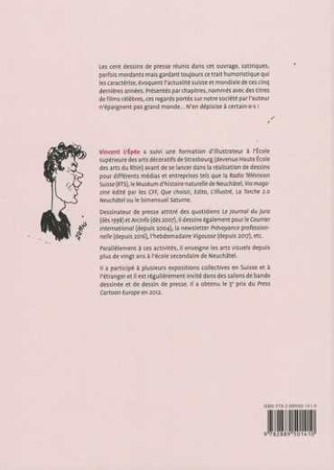 Les cent dessins de presse réunis dans cet ouvrage, satiriques, parfois mordants, mais gardant toujours ce trait humoristique qui les caractérise, évoquent l'actualité suisse et mondiale de ces cinq dernières années. Présentés par chapitres dont les titres reprennent ceux de films célèbres, ces regards portés sur notre société n'épargnent pas grand monde... N'en déplaise à certain·e·s !