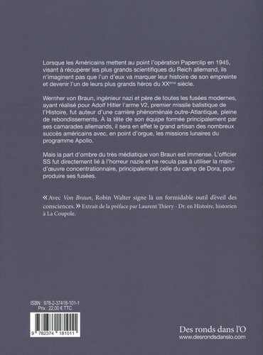 Lorsque les Américains mettent au point l'opération Paperclip en 1945, visant à récupérer les plus grands scientifiques du Reich allemand, ils n'imaginent pas que l'un d'eux va marquer leur histoire de son empreinte et devenir l'un de leurs plus grands héros du XXe siècle. Wernher von Braun, ingénieur nazi et père de toutes les fusées modernes, ayant réalisé pour Adolf Hitler l'arme V2, premier missile balistique de l'Histoire, fut auteur d'une carrière phénoménale outre-Atlantique, pleine de rebondissements. A la tête de son équipe formée principalement par ses camarades allemands, il sera en effet le grand artisan des nombreux succès américains avec, en point d'orgue, les missions lunaires du programme Apollo. Mais la part d'ombre du très médiatique von Braun est immense. L'officier SS fut directement lié à l'horreur nazie et ne recula pas à utiliser la main-d'oeuvre concentrationnaire, principalement celle du camp de Dora, pour produire ses fusées.